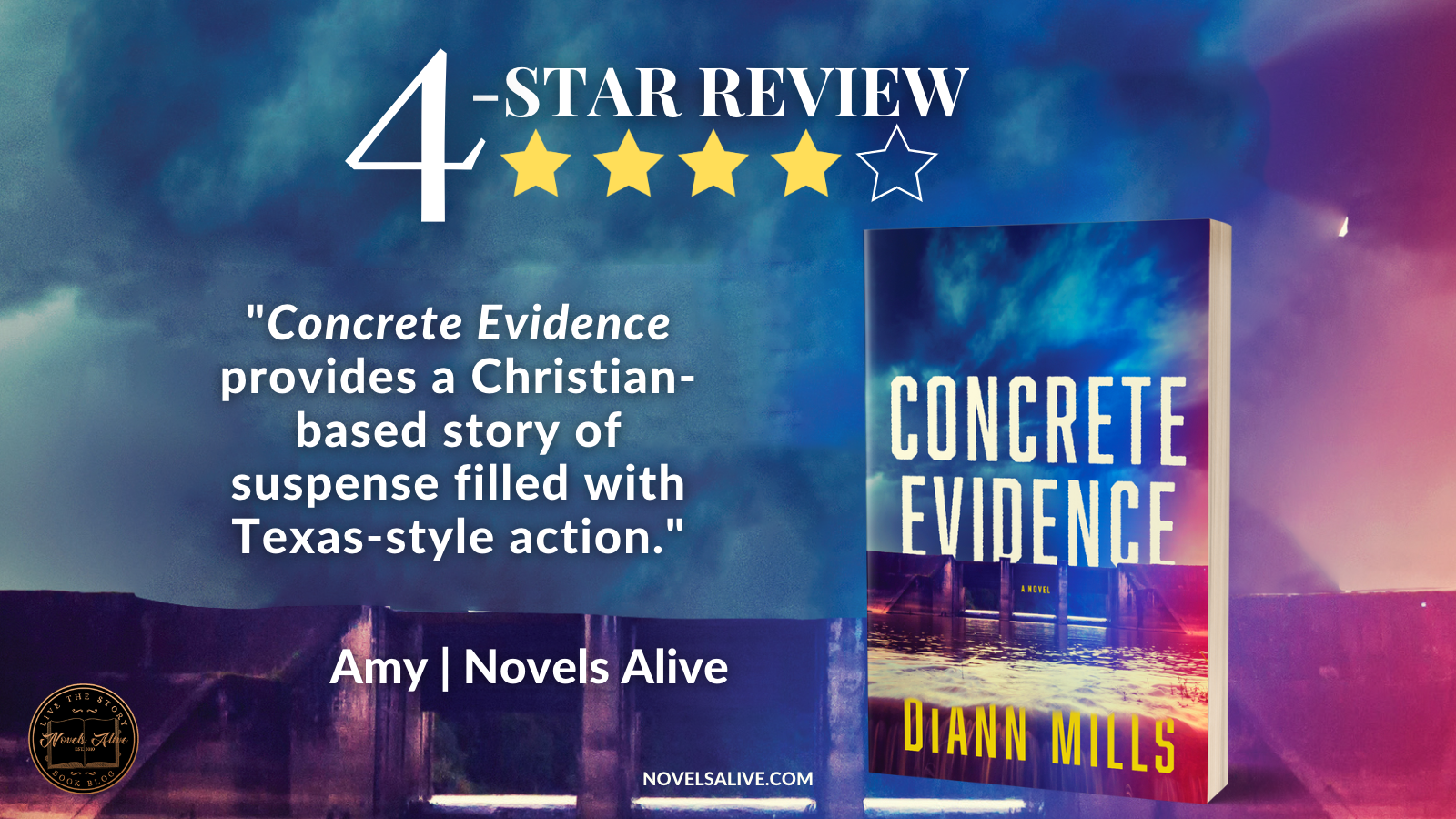 Author DiAnn Mills delivers a suspenseful story in Concrete Evidence. The main characters, all of whom are active Christians, rely on their faith when the going gets tough. Avery teams up with FBI agent Marc Wilkins to find answers.