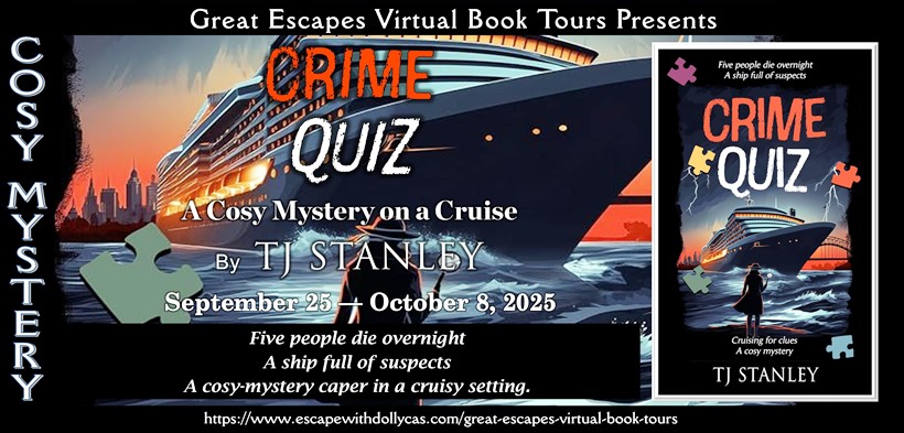 Five passengers die overnight on a Crime Writers’ Conference cruise in Author TJ Stanley’s Crime Quiz, featuring a cozy mystery caper on a dreamy oceanic cruise line.