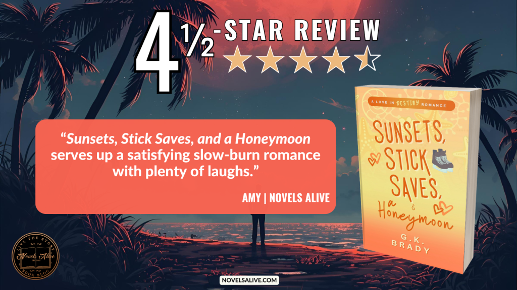 Author G.K. Brady delivers a fun-filled contemporary romance in Sunsets, Stick Saves, and a Honeymoon. It is part of a multi-author five-series set in the same beach town.