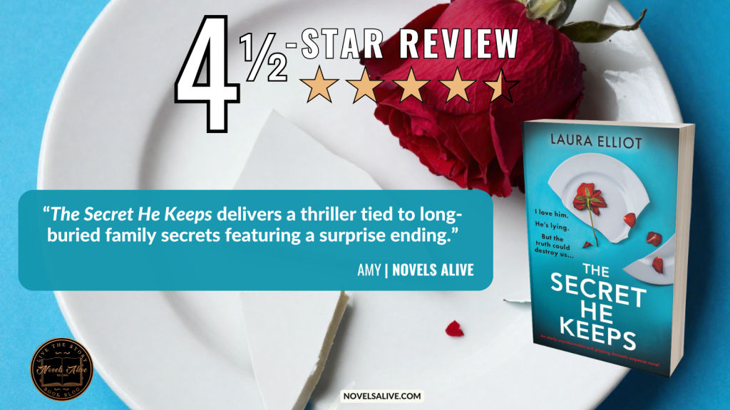 Author Laura Elliot delivers multiple plot twists in The Secret He Keeps. Alysia’s new boyfriend, Darragh, seems perfect. However, when Alysia discovers a connection between him and the murder over two decades ago, it forces her to realize someone in her life is lying.